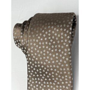 Sophisticated Michael Kors necktie in a warm brown and tan geometric pattern. 100% silk for a polished finish—ideal for business wear, weddings or formal events.