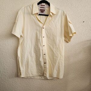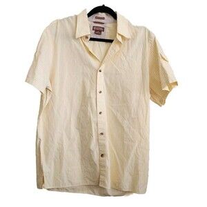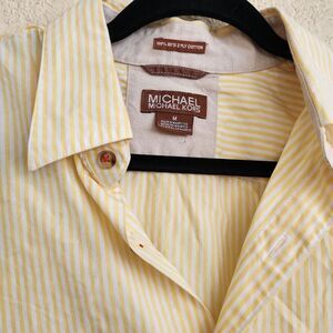 Michael Kors Men’s Button Down Shirt M Yellow Striped Short Sleeve Cargo Pocket