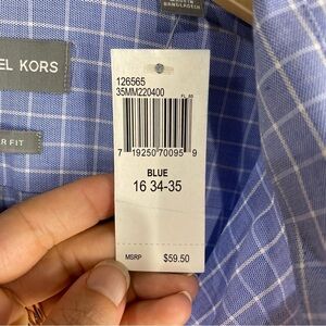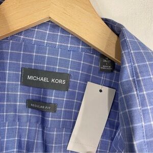 Michael Kors Men's Button Up Down Dress Shirt Top Regular Fit Plaid Large 16 NWT