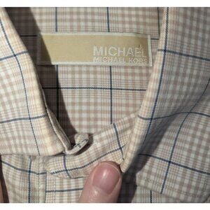 Michael Kors Men's Button Up Tan Plaid Slim Fit Dress Shirt Size 34/35