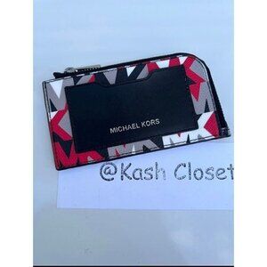 Michael Kors Mens Card case wallet Cooper Logo Zip Around Crimson
