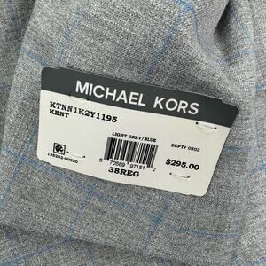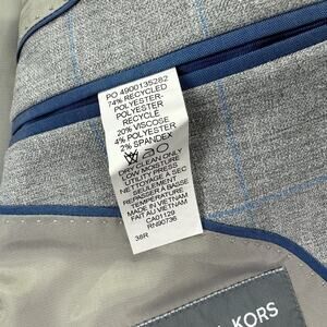 Michael Kors Mens Classic Fit Windowpane Stretch Sport Coat Gray 38R *New with tags, never worn* Chest: 21" Length: 31" Chest measurements are taken from armpit to armpit Length measurements are taken from top of shoulder by collar to bottom hem 74% Recycled Polyester 20% Viscose 4% Polyester 2% Spandex SKU: EU62