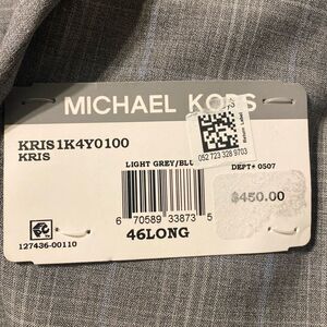 A stylish professional look starts with this suit jacket from Michael Kors. With stretch for comfort, it offers a modern fit and subtle plaid with understated texture. Notched lapel. Two-button closure; four-button cuffs. Two front flap pockets; left chest welt pocket. Side vent; fully lined