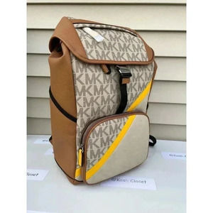 Michael Kors Mens Cooper Backpack Logo Stripe Bag & Wallet Bundle Set Chino