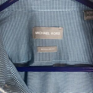 Keywords: Michael Kors, dress shirt, men's shirt, long sleeve, regular fit, blue shirt, checkered shirt, business casual, office wear, formal shirt, button down shirt, men's fashion, classic style