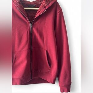 Michael Kors Men’s Full-Zip Sherpa-Lined Hoodie XL -in Burgundy/Deep Red.