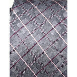 Michael Kors Men’s Gray Pink Purple Plaid Silk Tie