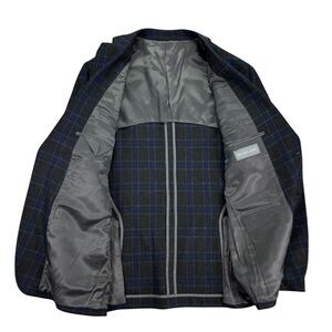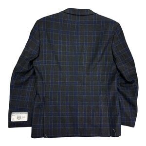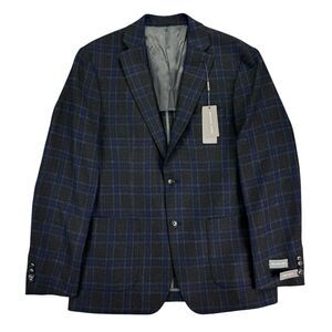 Michael Kors Mens Keates Classic Fit Wool Plaid Sport Coat Charcoal Blue 40R