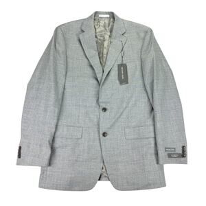 Michael Kors Mens Kent Classic Fit Stretch Windowpane Sport Coat Gray Blue 40L