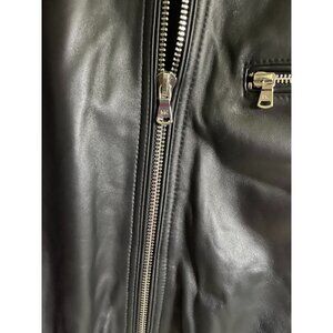 Michael Kors Mens L Black Leather Jacket Coat #121545 Zip Adjustable Cuffs & Hem
