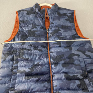 Michael Kors Mens Large Reversible Blue Camo & Orange Down Vest