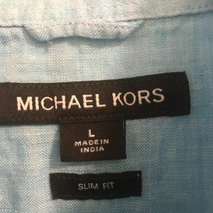 Michael Kors linen light blue button down shirt, slim fit size large. In great shape with no flaws or damage.