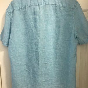 Michael Kors Men's Light Blue 100% Linen Short Sleeve Button Down Shirt, Size L