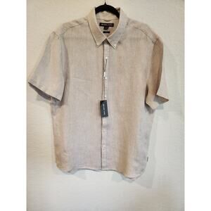 Michael Kors Men’s Linen Shirt XL Slim Fit Short Sleeve Button Up Beige NWT