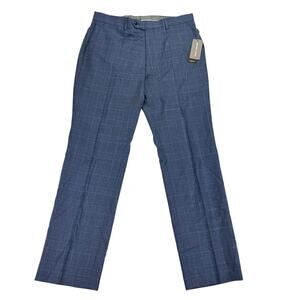 Michael Kors Mens Malone Classic Fit Plaid Wool Stretch Suit Pants Blue 32x30