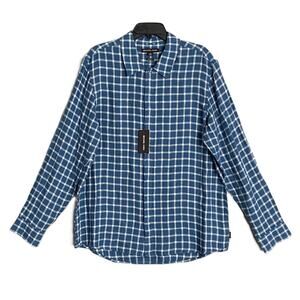 Michael Kors Men's Medium Classic Fit Linen Shirt Blue Check Long Sleeve NEW