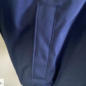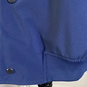 Michael Kors Men’s Navy Blue Bomber Jacket Coat. Sz XL. Zipper pocket on right upper sleeve. Velcro closure pocket inside left chest. Snap closure. Snap closure hand pockets.