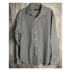 Michael Kors Men’s Navy Gingham Check Button Down Shirt Long Sleeve Size 34/35