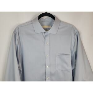 Michael Kors Mens Non Iron Button Up Dress Shirt Light Blue Sz 17 32/33