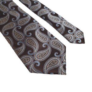 Michael Kors Mens Paisley Silk Tie Brown Blue Elegant Necktie