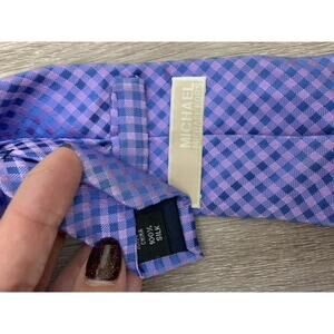 Keywords: Michael Kors tie, purple tie, men's designer tie, silk tie, plaid tie, checked tie, classic width tie, classic length tie, men's fashion accessory, formal wear, business attire, wedding tie, luxury tie, pre-owned tie, men's silk tie.