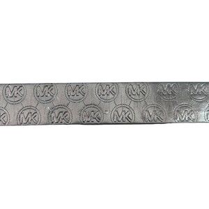 Crafted from premium materials, this Michael Kors belt features a sleek silver monogram design, providing both style and durability for any wardrobe.