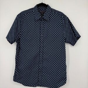 Keywords: Michael Kors shirt, mens shirt, slim fit, short sleeve shirt, button down shirt, casual shirt, patterned shirt, blue shirt, geometric pattern, men's fashion, business casual, designer shirt, summer shirt, L size shirt
