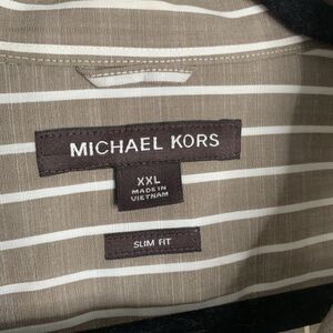 Michael Kors Men's Slim Fit Striped Button Down Shirt Brown Size XXL 100% Cotton