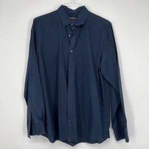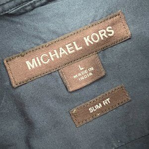 Michael Kors Mens Slim-Fit Stretch-Cotton Button Down Dress Shirt Midnight Large