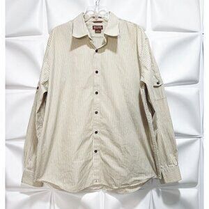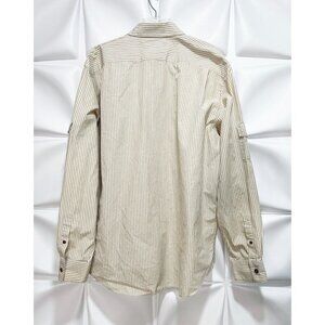 Michael Kors Mens Sz XL Button Down Cargo Shirt Utility Cotton Striped Tan