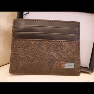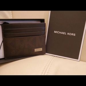 Michael Kors Men's Unisex Card Case Jet Set Brown Leather PVC Tall Small Wallet