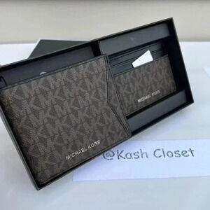Michael Kors Mens Wallet Card case Box Set- Brown