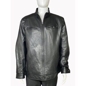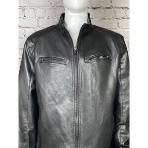 Michael Kors Mens XXL Black Perforated Faux Leather Moto Jacket Full Zip Collar