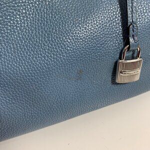 Michael Kors Mercer Duffel Bowling Shoulder Crossbody Bag Denim Blue Leather