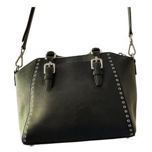 Michael Kors Mercer Gallery Medium Satchel Black Leather Eyelet Trim Crossbody