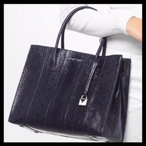 Michael Kors Mercer Large Snakeskin Tote Admiral