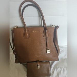 Michael Kors Mercer Large Tote Leather Bag w/ Matching Wallet–Cognac Camel Brown