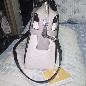 EUC - only used once. Smoke-free home. The color-blocked leather Mercer satchel proves that style in the details. The belted silhouette opens to reveal a spacious interior with slip pockets for storing your phone and wallet, with a detachable strap so you can hold by top handles. Beautiful bag for day or night. Work or play.
