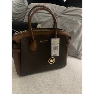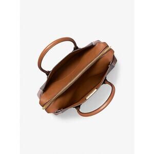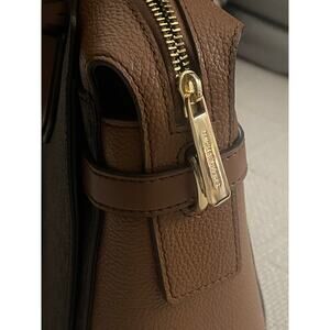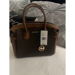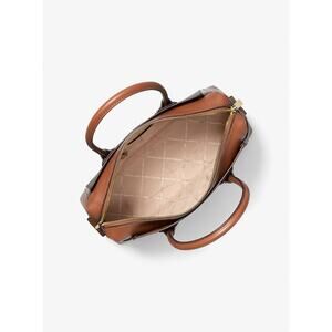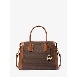 Michael Kors Mercer Medium Signature Logo and Leather Belted Satchel Bag