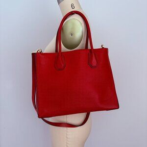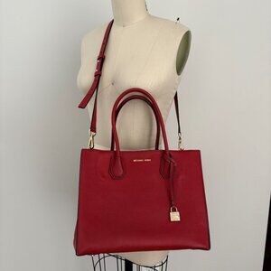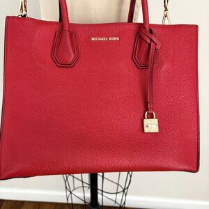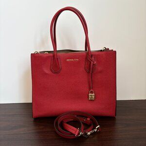 Michael Kors Mercer Red Large Pebbled Leather Accordion Tote Crossbody Bag