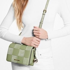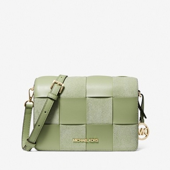 Michael Kors Mercer Small Woven Faux Leather and Suede Crossbody Bag Purse Nwt