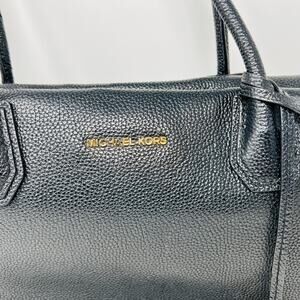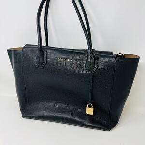 Michael Kors Mercer Tote Hard Leather Bag Shoulder Handbag Black Gold
