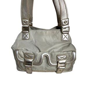 Michael Kors Metallic Beige/Silver Nylon Shoulder Bag With Buckle Detail