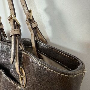 Michael Kors Metallic Bronze Brown Leather Tote Shoulder Handbag Purse