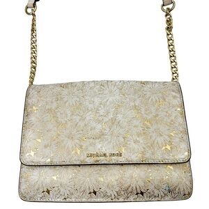 Michael Kors Metallic Floral Crossbody Bag Purse Gold Cream Leather 32S8MF5C7K