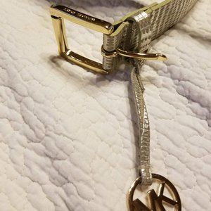 Michael Kors MK Logo Metallic Gold Lizard-Embossed Belt in Golden Color