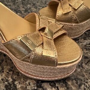 Michael Kors Metallic Gold Wedge espadrille Sandals NWOT 8.5