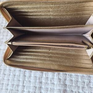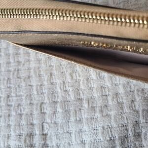 Michael Kors Metallic Gold Zip Around Wallet. Preowned. Minor wear. Several card slots. Zipper Pocket. Zipper Closure. Good Condition. May need leather treatment. Smoke Free Home. Offers Welcome.