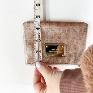 metallic rose gold, wallet, wristlet, MK, zip closure
