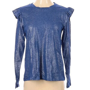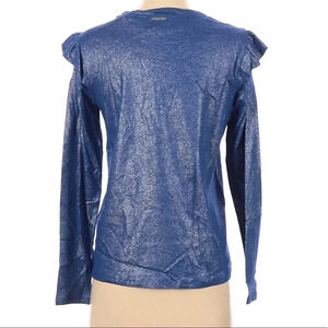 Michael Michael Kors Metallic Blue Ruffle Long Sleeve Blouse, size P / M.